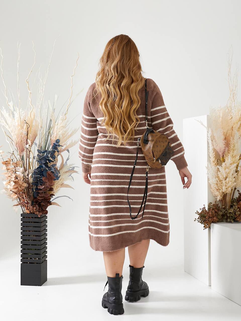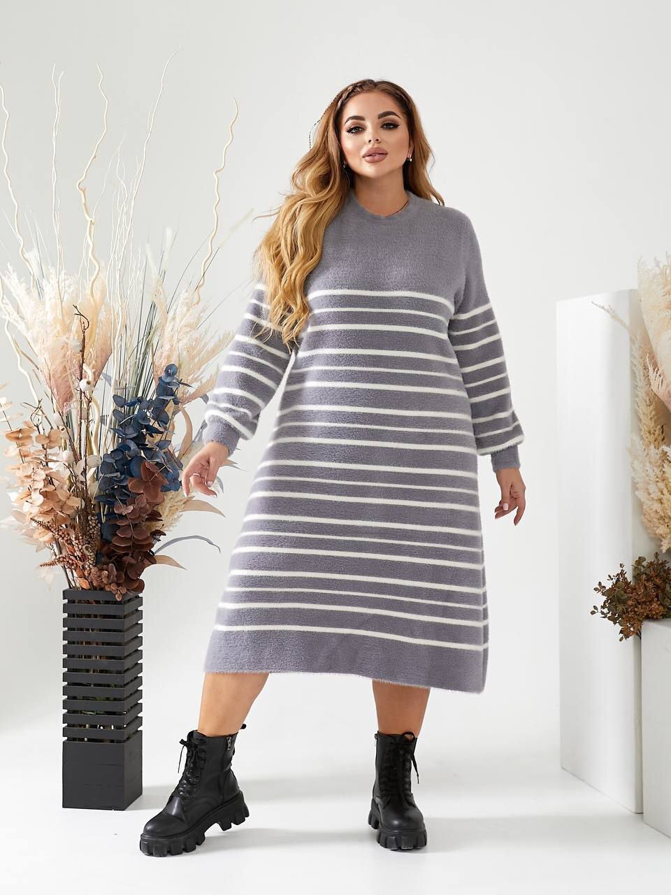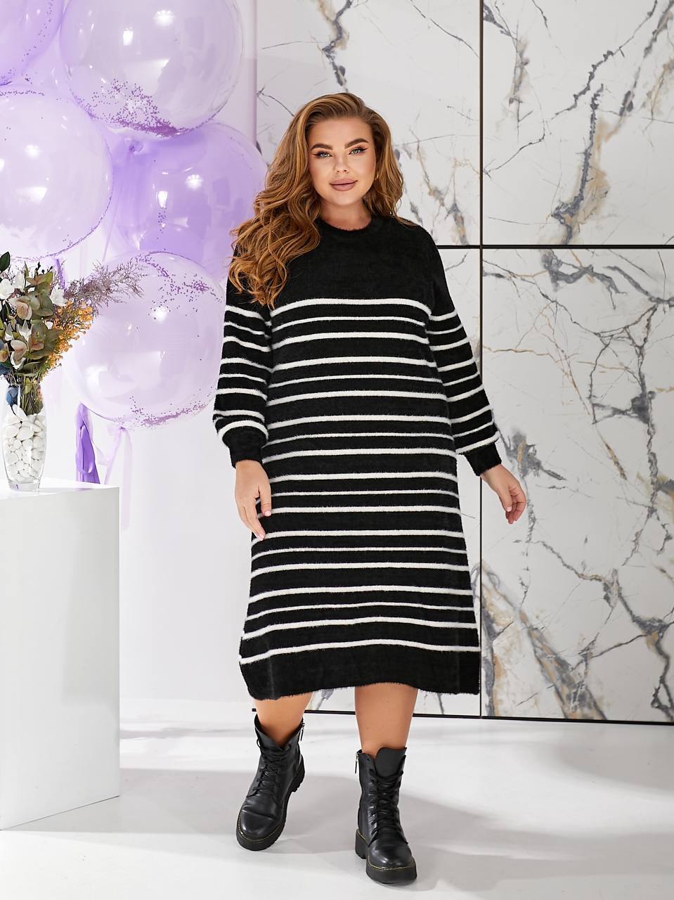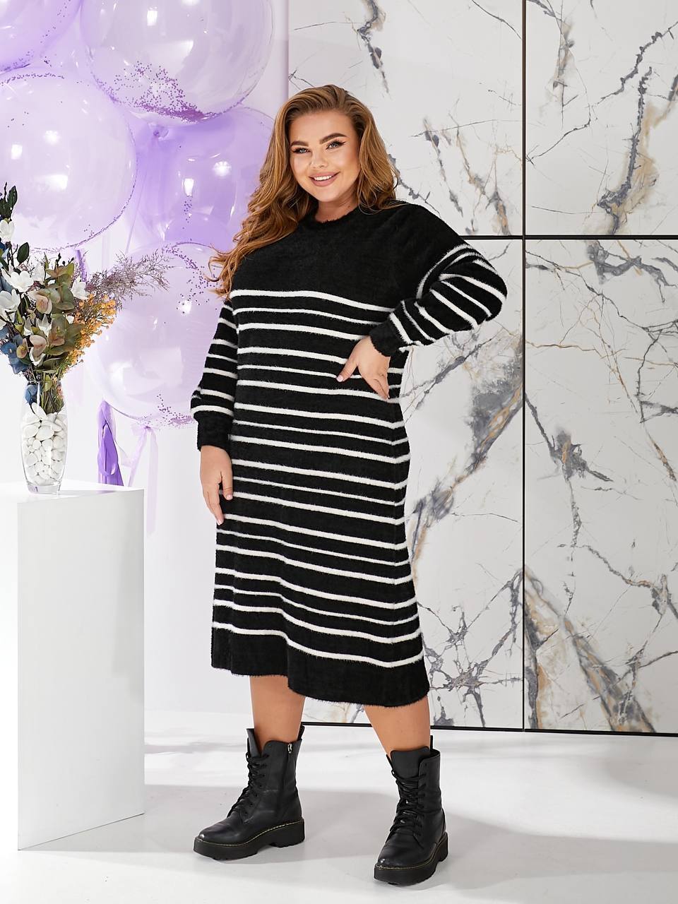 Опис: Яскрава сукня з оригінальними рукавами вільного крою на манжеті. Модель прямого крою та довжини міді, поділ заокруглений та доповнений невеликими розрізами. В боковій частині є врізні кишені