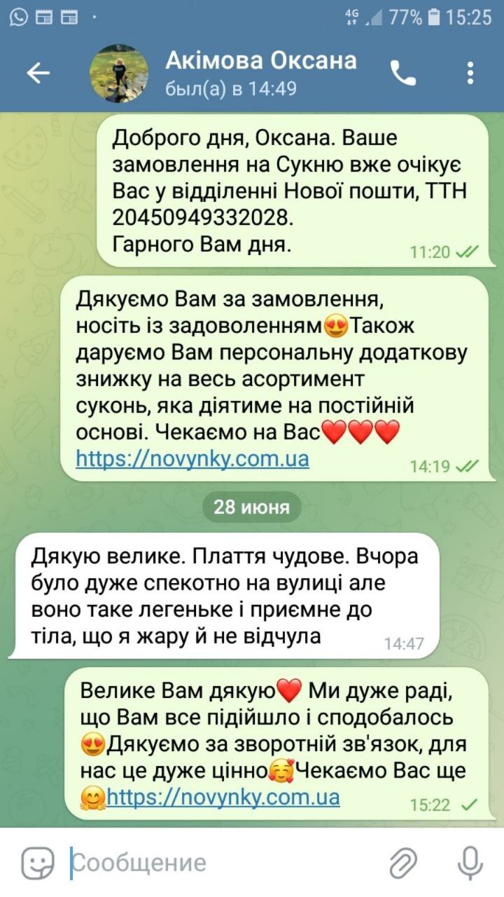 Менеджер зв'яжеться з Вами для підтверждення замовлення впродовж дня. Будьте на зв'язку.