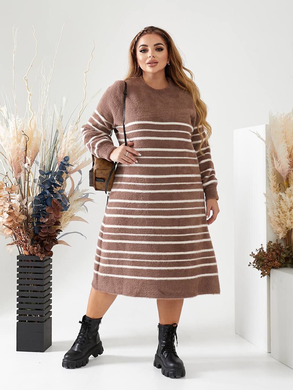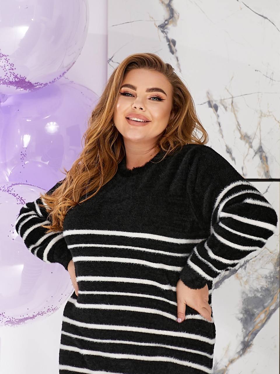 Опис: Яскрава сукня з оригінальними рукавами вільного крою на манжеті. Модель прямого крою та довжини міді, поділ заокруглений та доповнений невеликими розрізами. В боковій частині є врізні кишені