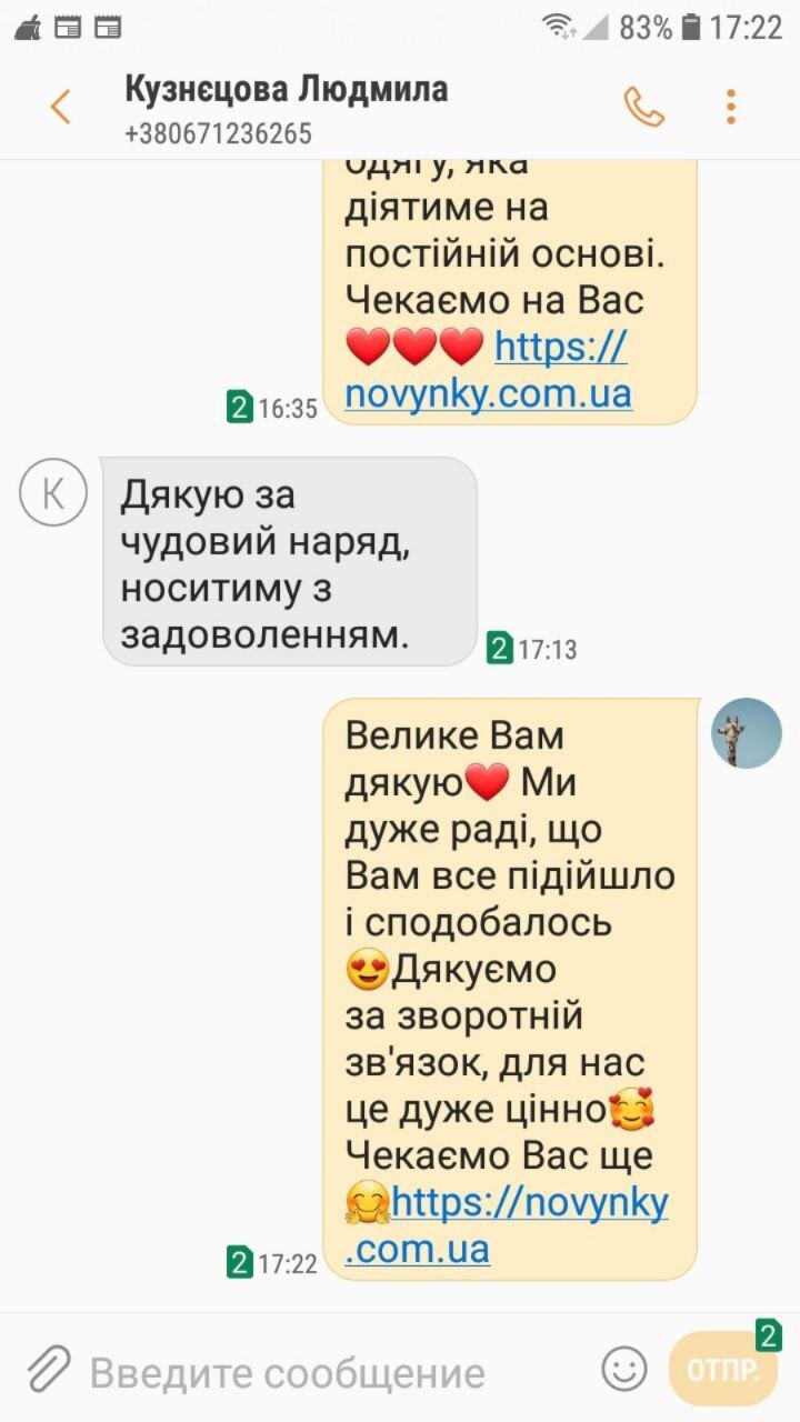 Здійснивши замовлення на нашому сайті будь-якого товару, Ви погоджуєтесь отримати смс-повідомлення про доставку купленого Вами товару в відповідне поштове відділення, згідно із зазначеним вами індексу.